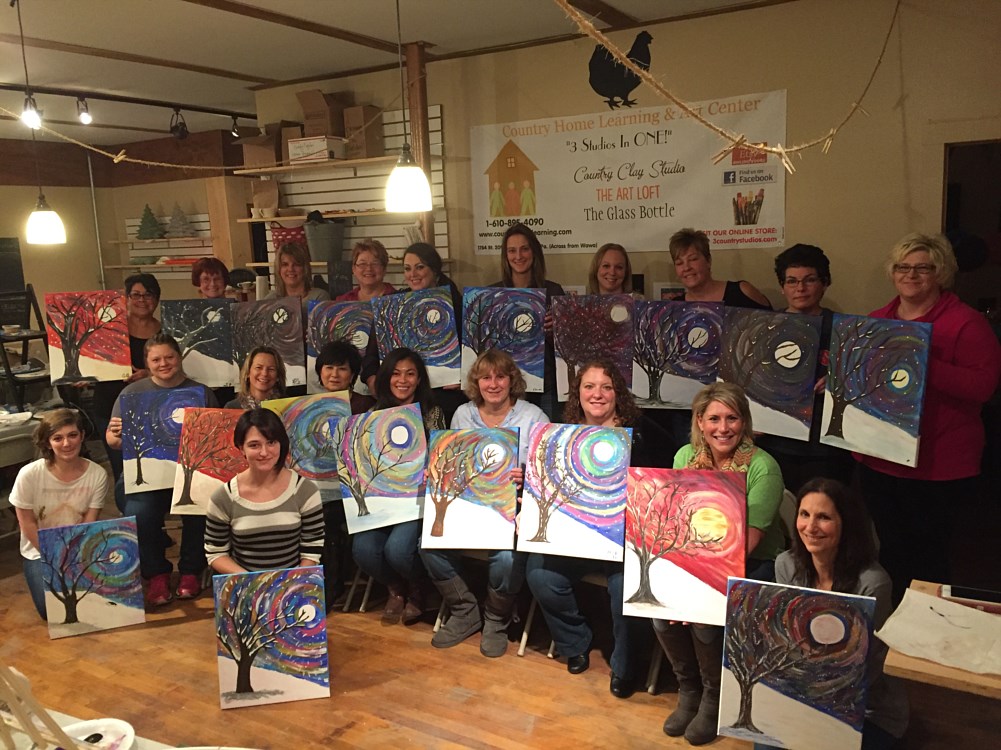 Here at country home learning & art center we strive to create a place where one can feel comfortable releasing their creativity... We allow you to alter any / all paint colors to your preference & alter anything in the painting to make it your own & of course... We always welcome you to paint whatever you like even if its not the scheduled painting the class is doing... The focus is to have fun!Full instructional class!